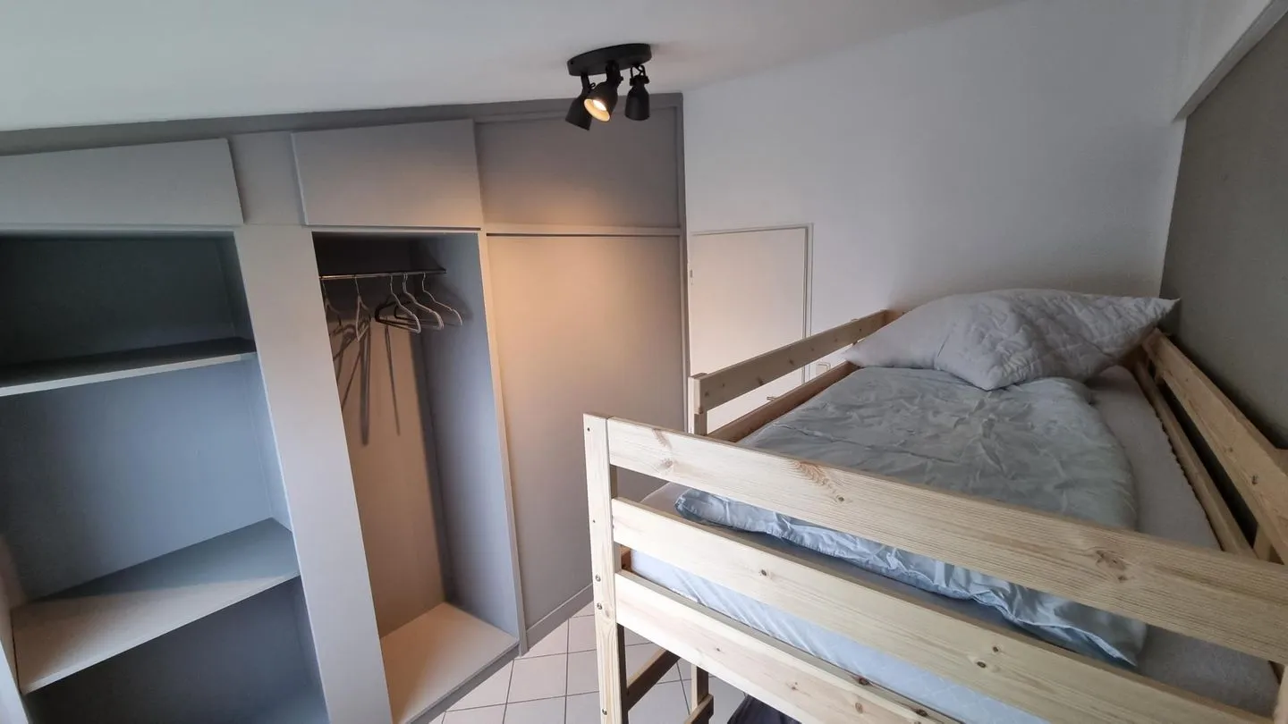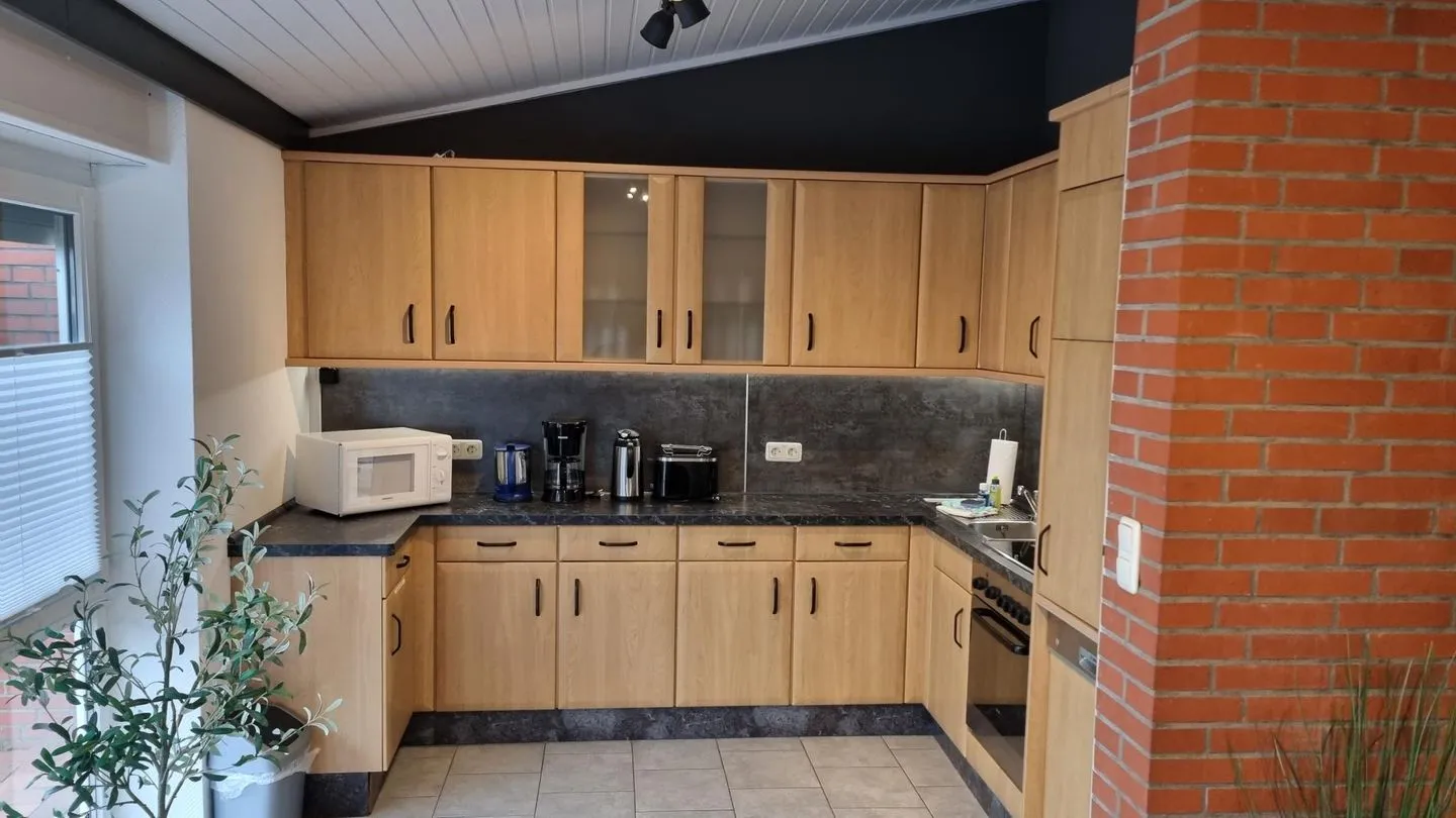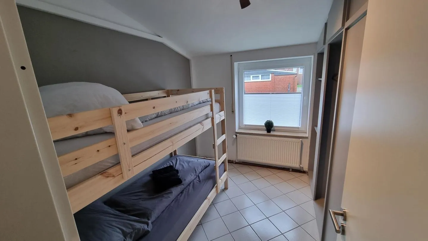 Der Wohnbereich ist freundlich gestaltet und lädt zu gemeinsamen Stunden nach einem Tag an der frischen Nordseeluft ein. Die Küche ermöglicht eine unkomplizierte Selbstversorgung während des Aufenthalts. Separate Schlafbereiche sorgen für erholsame Nächte und ausreichend Rückzugsmöglichkeiten.