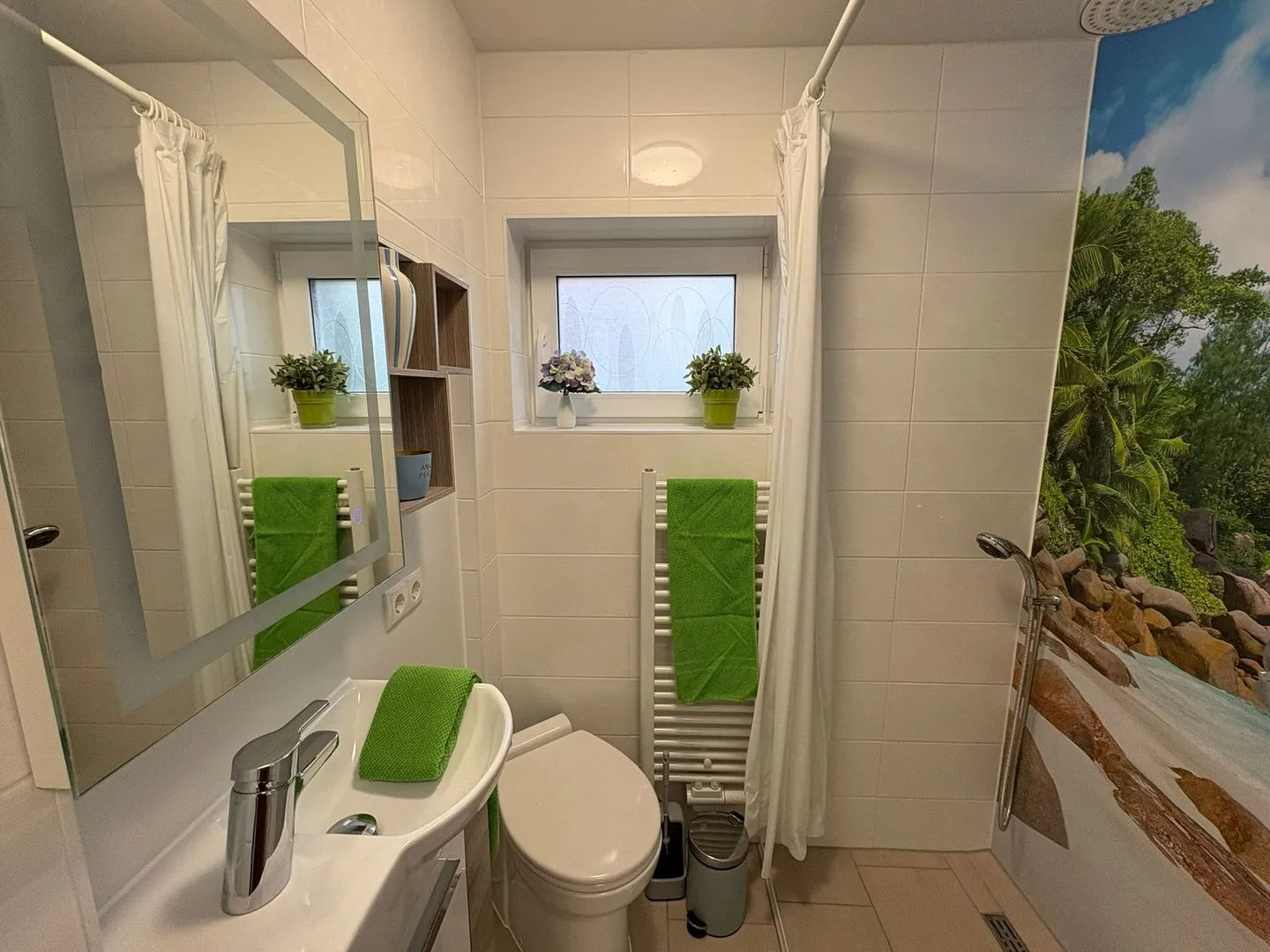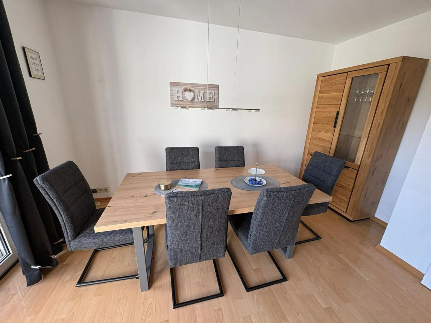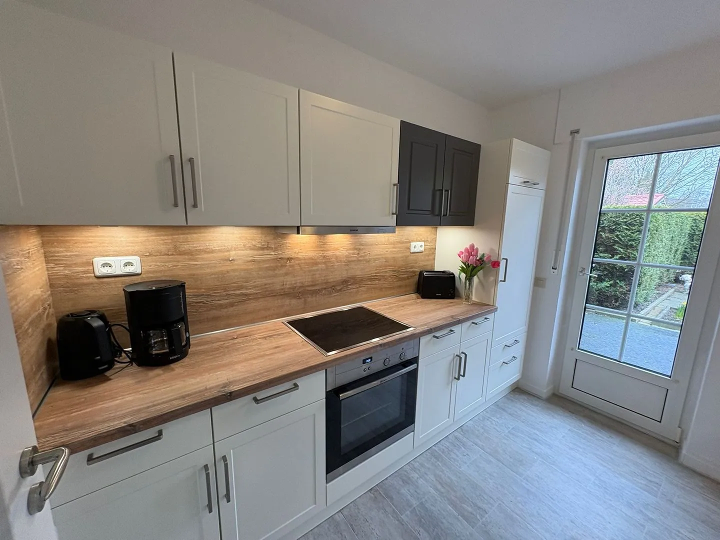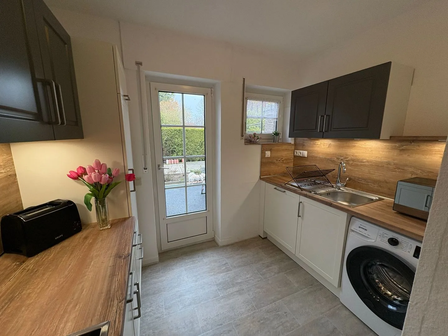 Für den Alltag ist die Ausstattung vielseitig: Zur Küchenzeile gehören Herd, Backofen, Mikrowelle, Kühlschrank mit Gefrierfach sowie eine Spülmaschine. Kaffee- und Teemaschine, Wasserkocher, Toaster und weitere Küchenutensilien stehen ebenso bereit wie Geschirr und Besteck. Im Haus sind zudem Waschmaschine (Eigennutzung), ein Wäseständer sowie ein Staubsauger vorhanden. Annehmlichkeiten wie TV, Internet und WLAN sind ebenfalls verfügbar; die Internetgeschwindigkeit liegt bei ab 25 MBit/s (z. B. VDSL). Praktisch ist der kontaktlose Check-in und Check-out. Für die Sicherheit sind Rauch- und Feuermelder vorhanden.