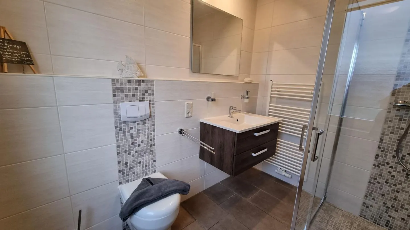Der Wohnbereich ist freundlich gestaltet und lädt zu gemeinsamen Stunden ein. Die Küche ermöglicht eine unkomplizierte Selbstversorgung während des Aufenthalts. Separate Schlafbereiche sorgen für erholsame Nächte und ausreichend Rückzugsmöglichkeiten.