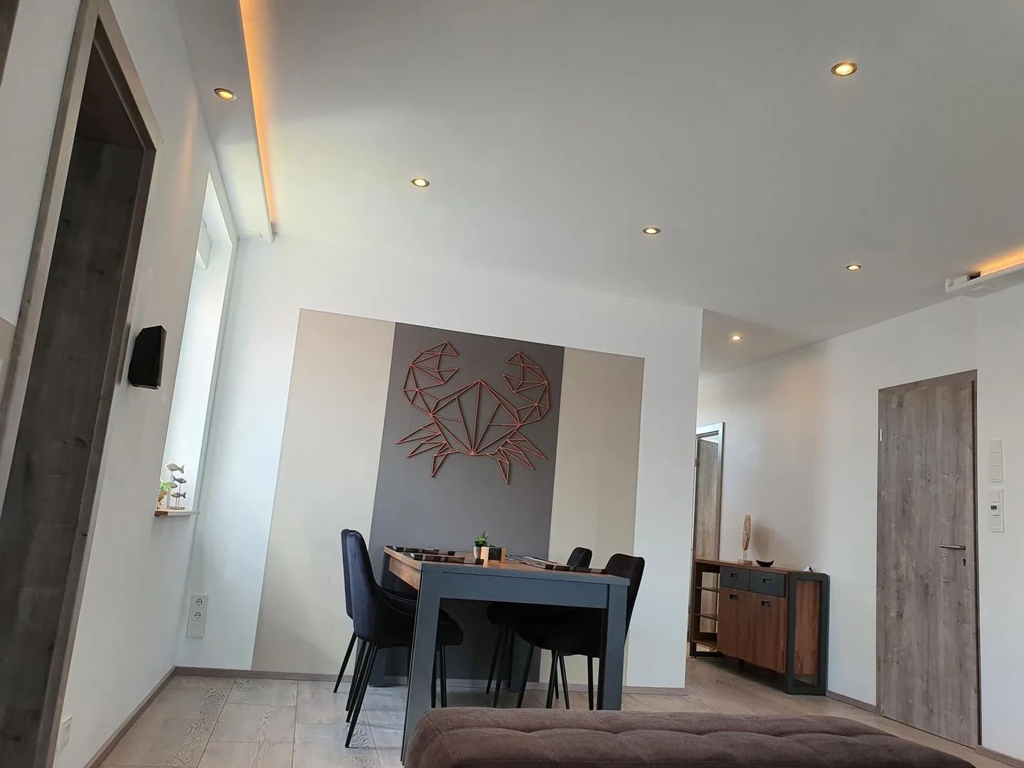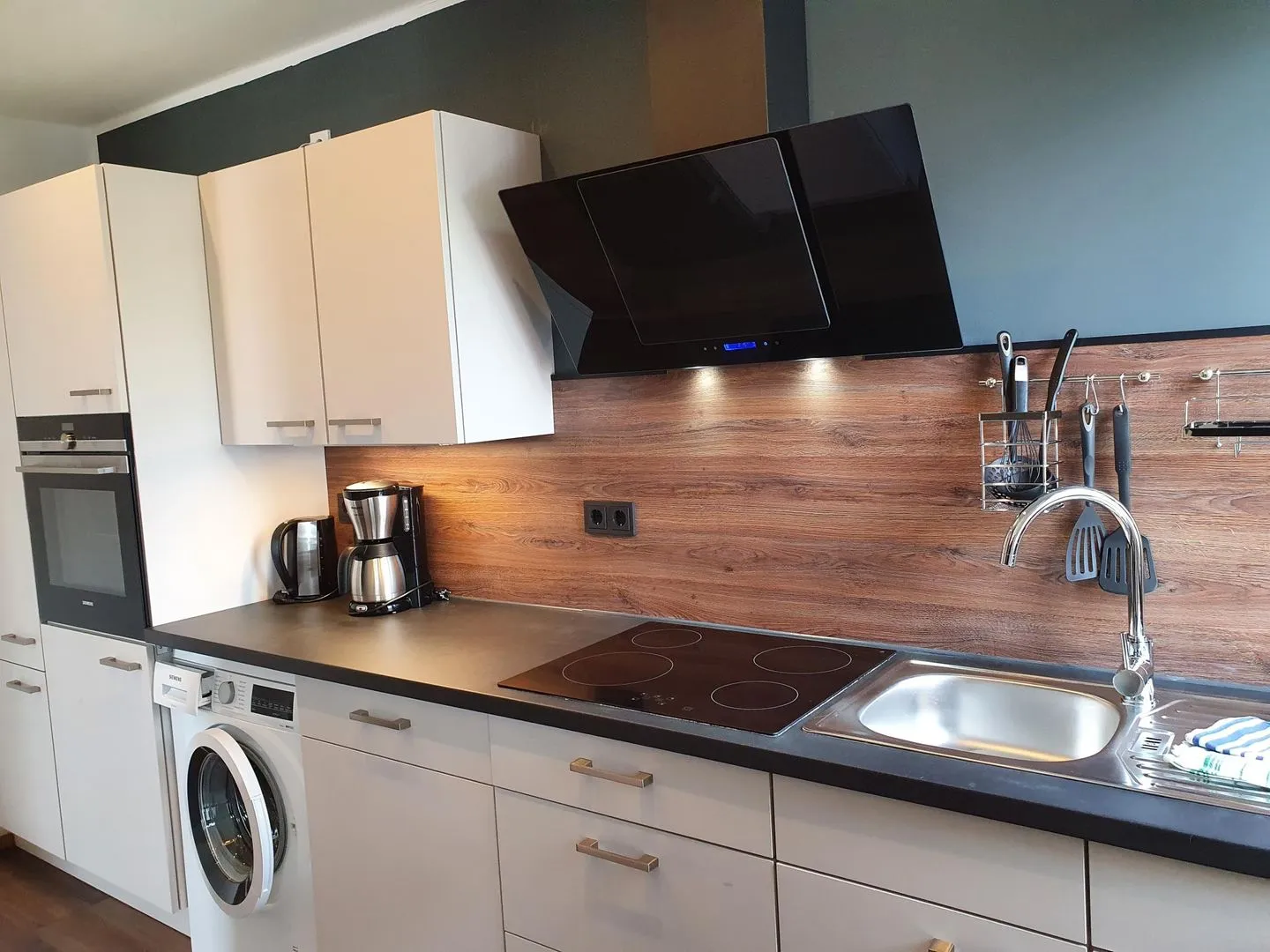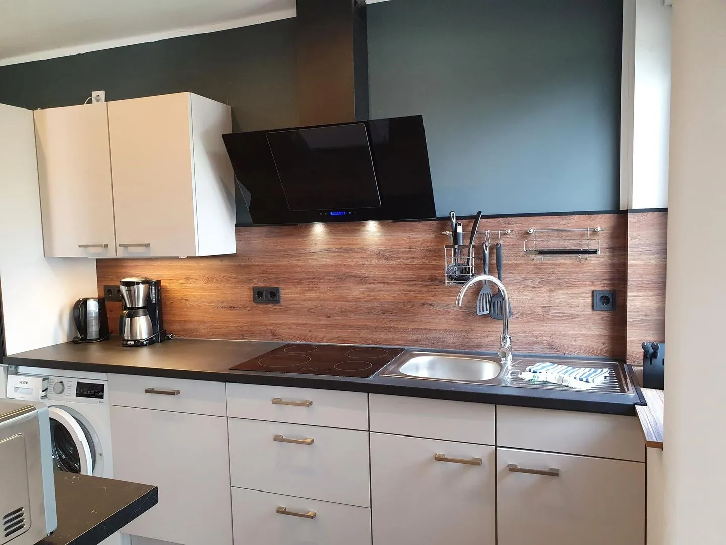 Der Wohnbereich ist freundlich gestaltet und lädt zu entspannten Stunden nach einem Tag an der frischen Nordseeluft ein. An kühleren Tagen sorgt der stilvolle Ethanol-Kamin für wohlige Wärme und eine besonders behagliche Stimmung. Die Küche ermöglicht eine unkomplizierte Selbstversorgung während des Aufenthalts. Separate Schlafbereiche sorgen für erholsame Nächte und ausreichend Rückzugsmöglichkeiten.