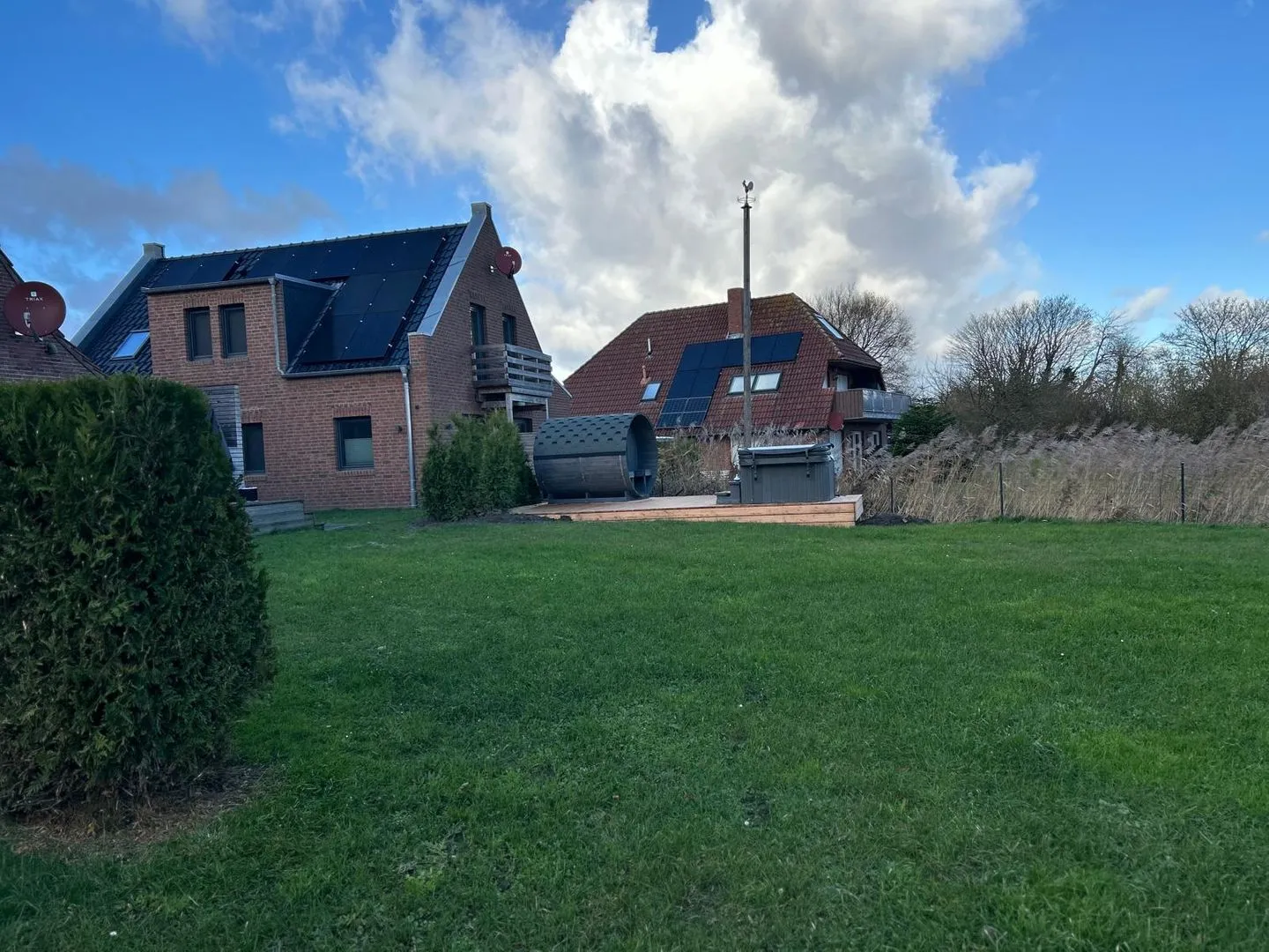 Im großen Gemeinschaftsgarten, den sich die Häuser Osterdeich 38 und 38a teilen, stehen separate Saunahäuschen sowie Whirlpools zur Verfügung. Hier lässt es sich wunderbar entspannen und der Blick in die Ferne schweifen lassen. Besonders in Herbst und Winter ist die wohltuende Wärme nach einem ausgedehnten Küstenspaziergang ein echtes Highlight.