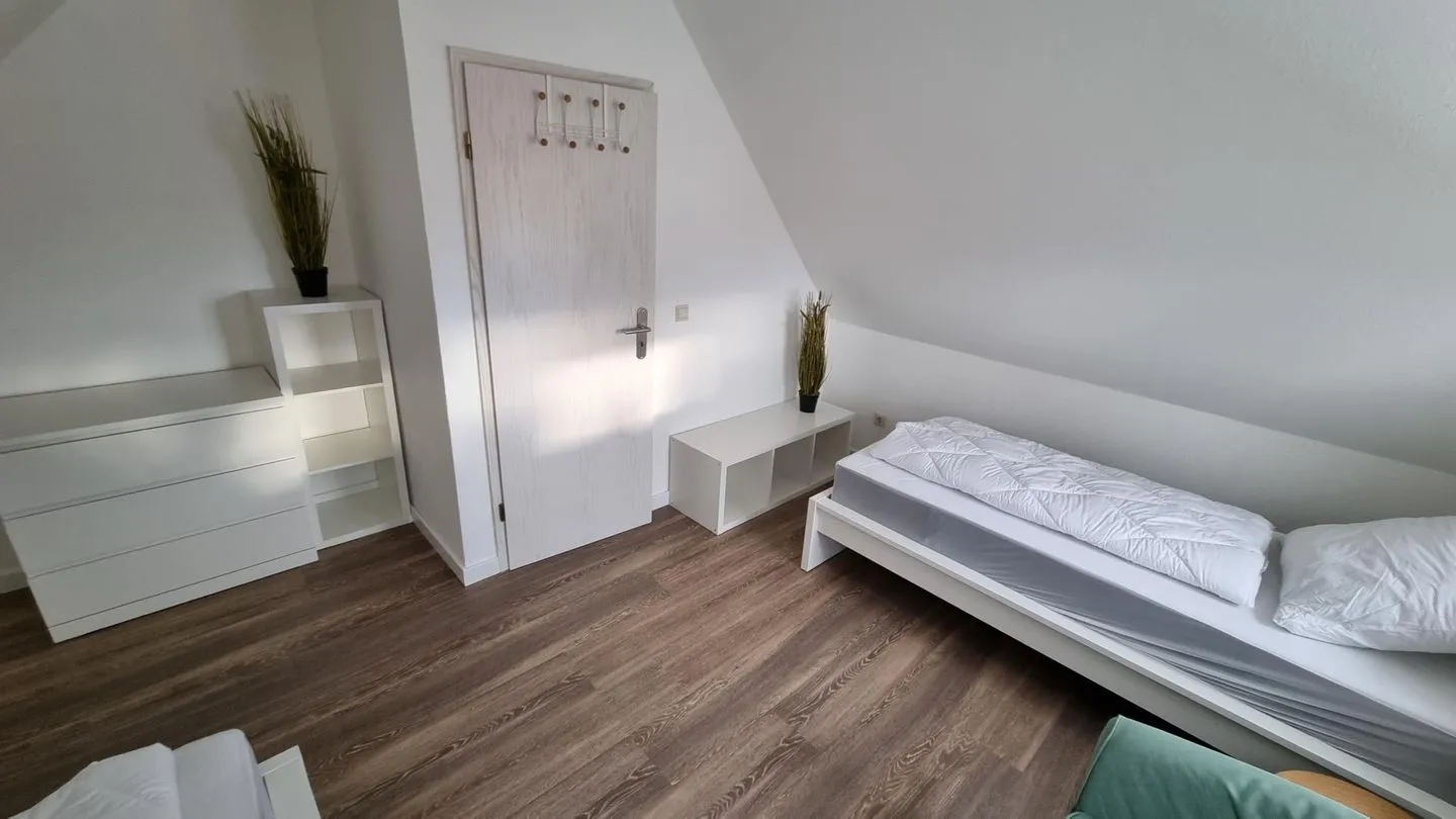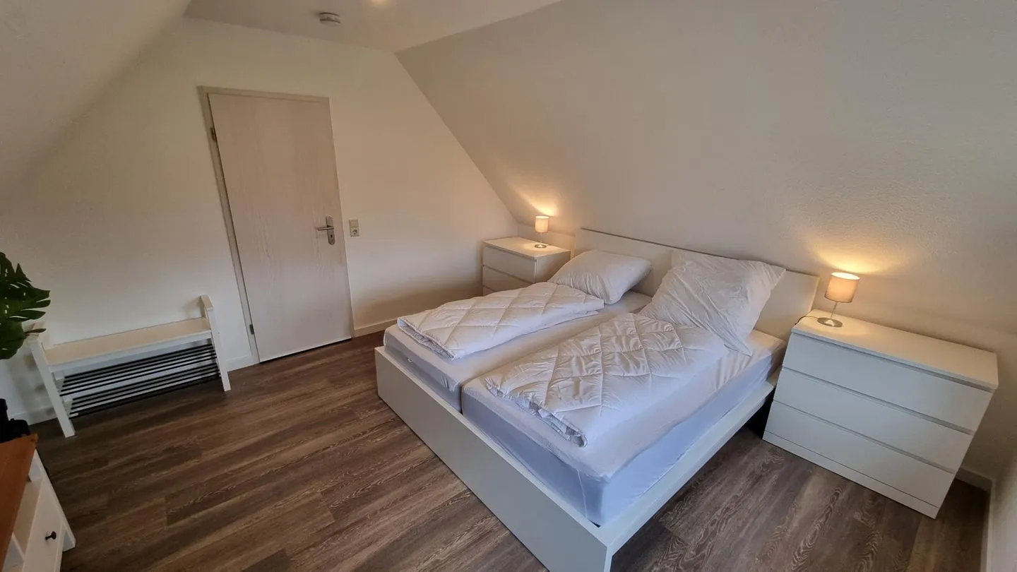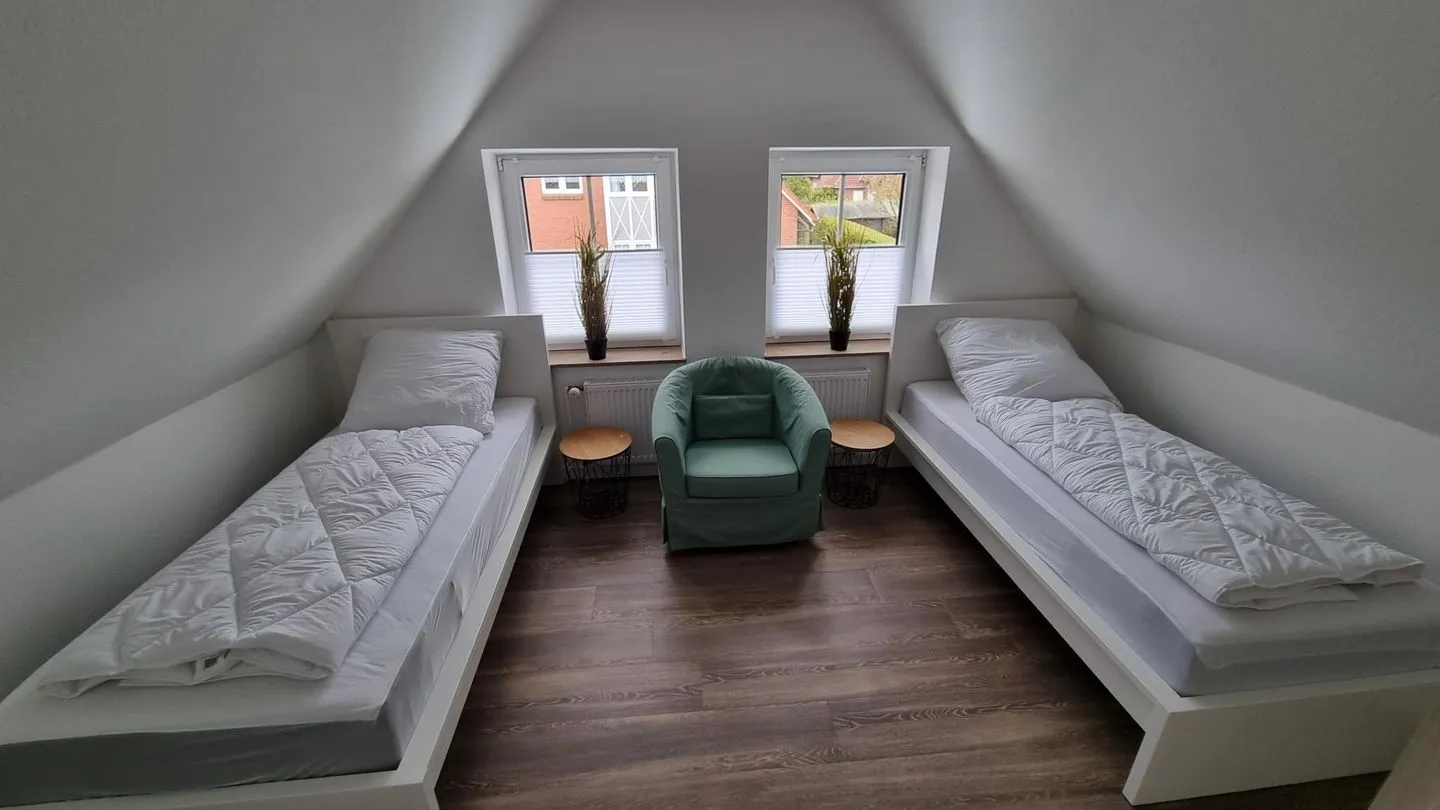 Der Wohnbereich ist freundlich gestaltet und lädt zu erholsamen Stunden nach einem Tag an der frischen Seeluft ein. Die Küche ermöglicht eine unkomplizierte Selbstversorgung während des Aufenthalts. Separate Schlafbereiche sorgen für Rückzugsmöglichkeiten und erholsame Nächte.